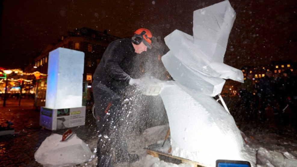 Oplev kunstner Allan Bo Jensen skabe en imponerende isskulptur ud af en stor isblok. - Ice for Kids - isskulptur for børn på Kulturkajen